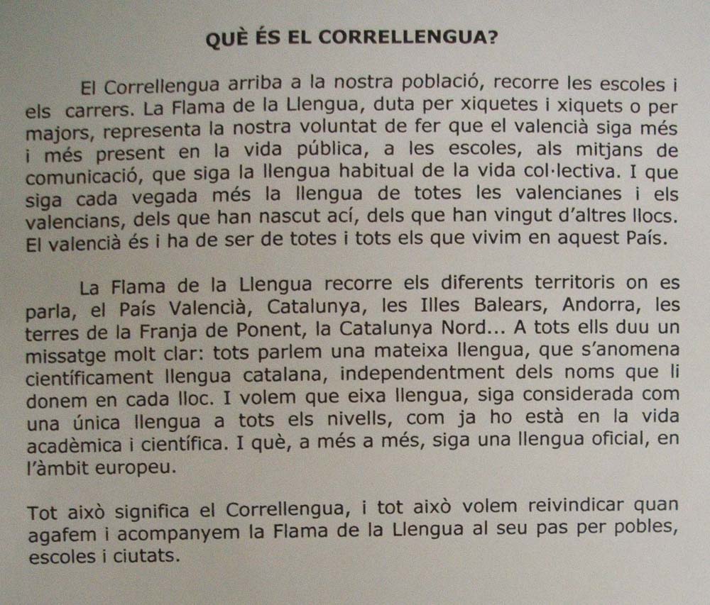 Junt amb el mes d’octubre arriba el Correllengua, que és la festa dels valencians que estimem la nostra llengua. El Correllengua recorre escoles i instituts, carrers i places, pobles i ciutats, i per on passa és una festa d’homenatge als nostres escriptors.