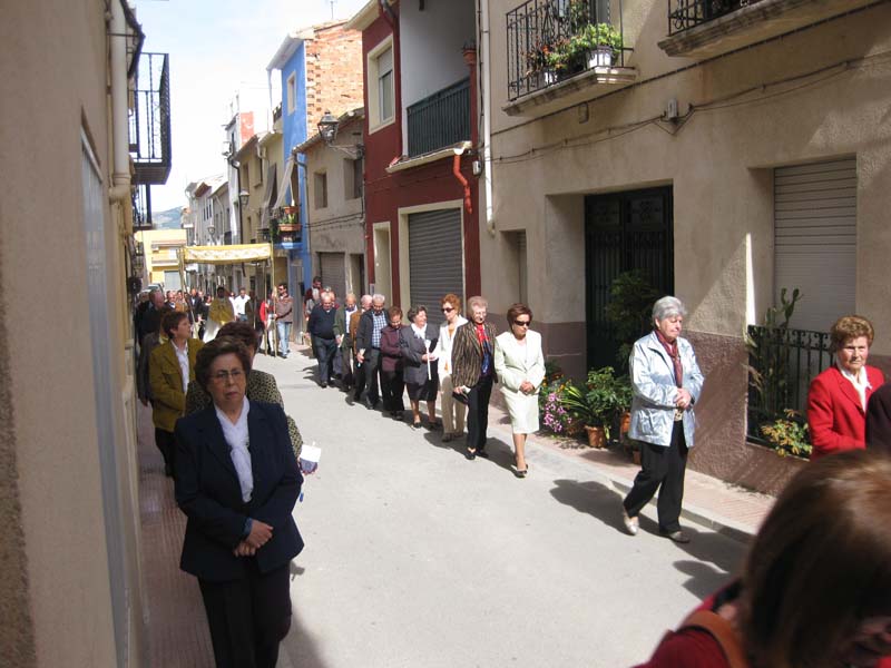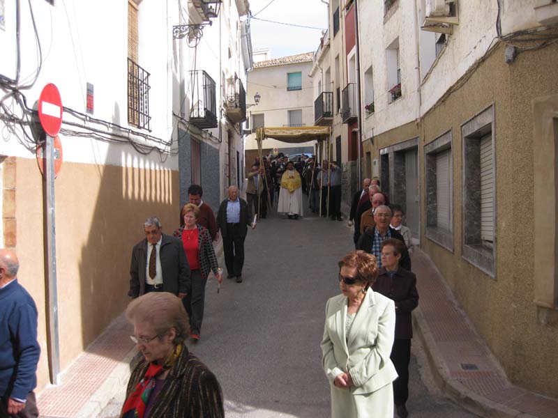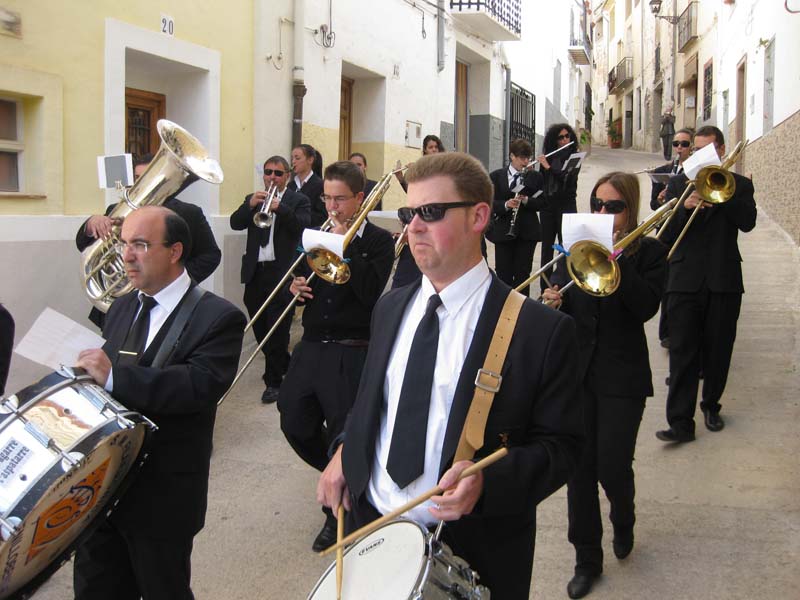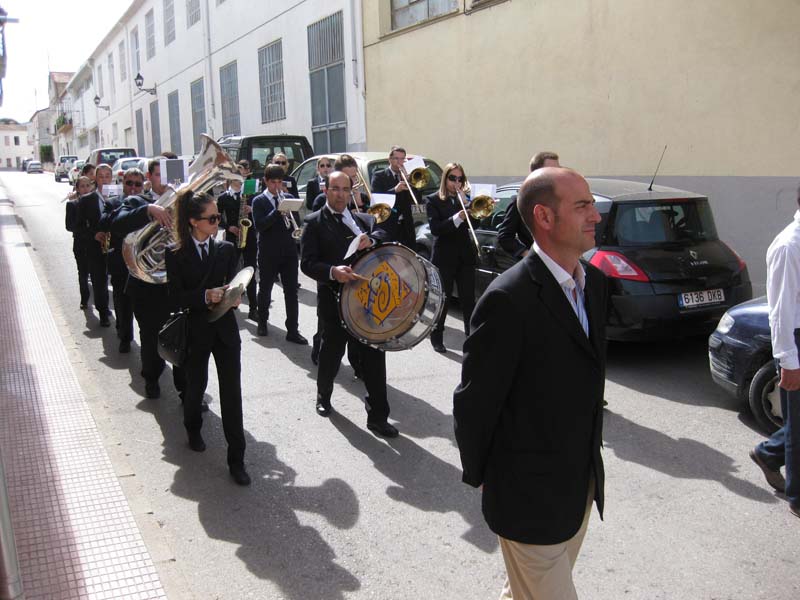 feligresos i les autoritats municipals, seguides per la banda de música, tots